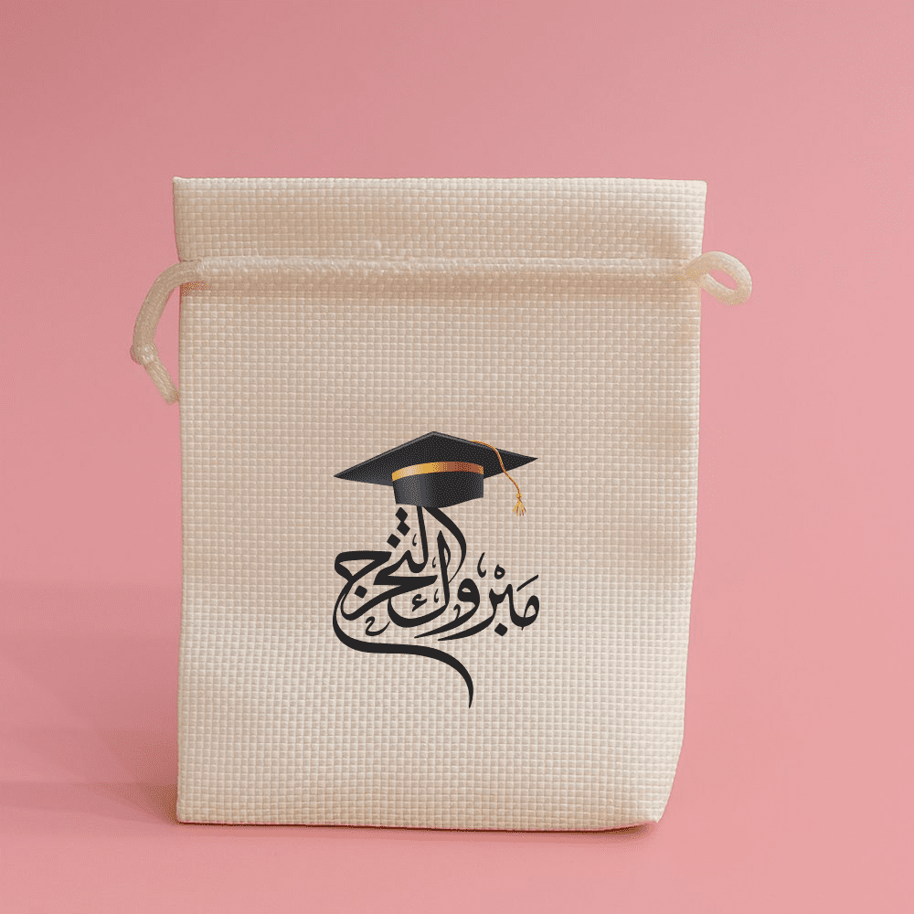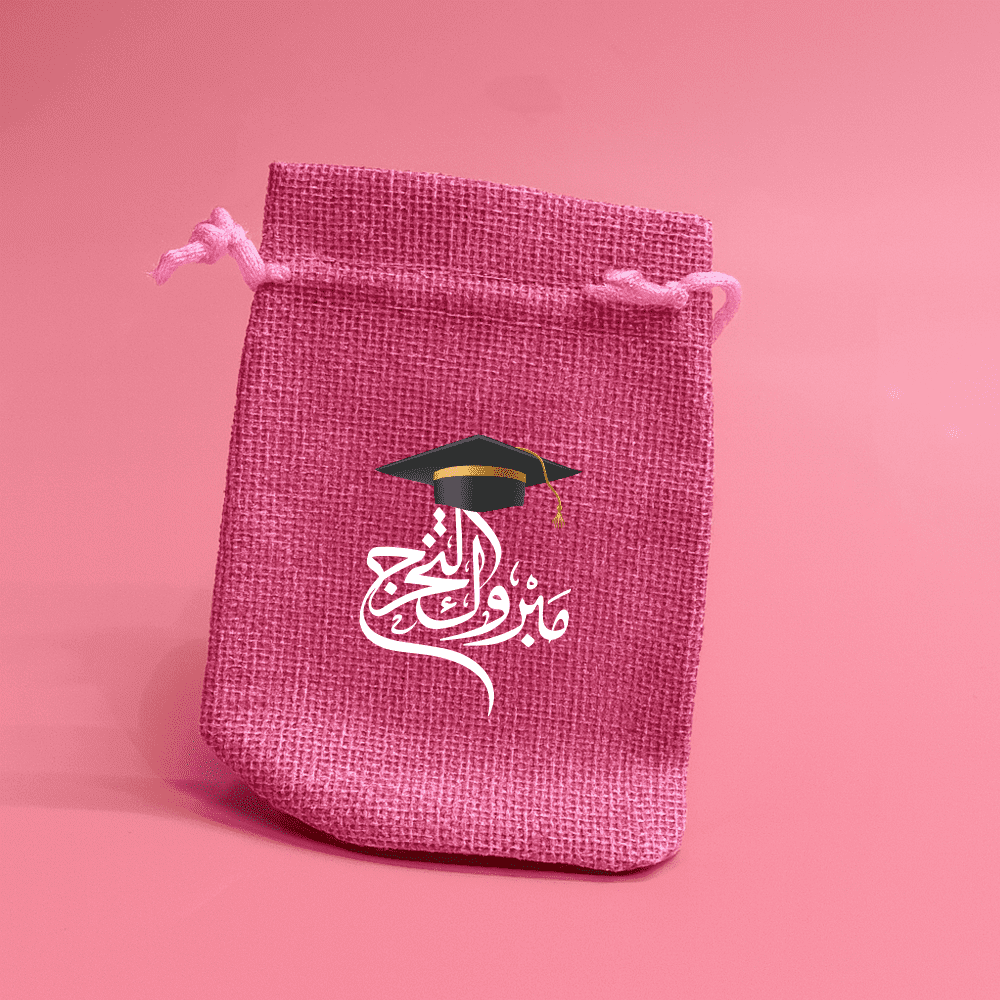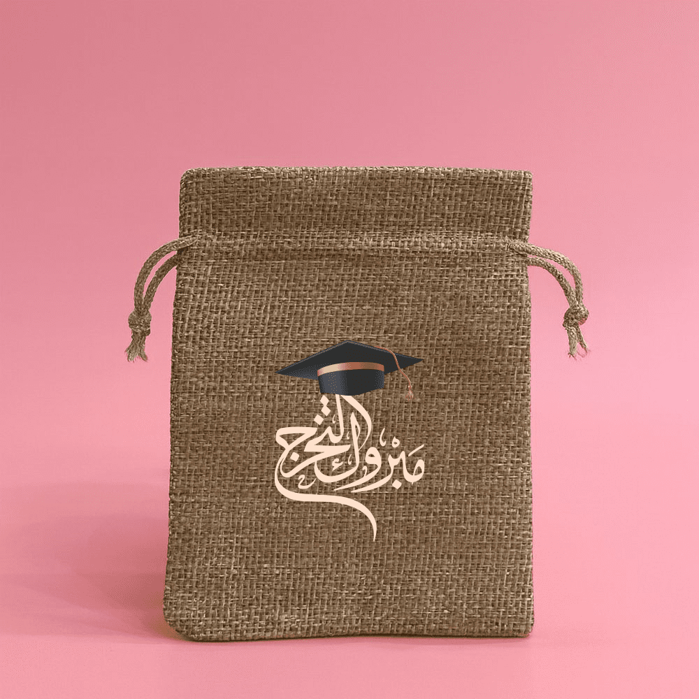 اكياس خيش بطباعة مميزة لتوزيعات التخرج عدة الوان(10 اكياس)