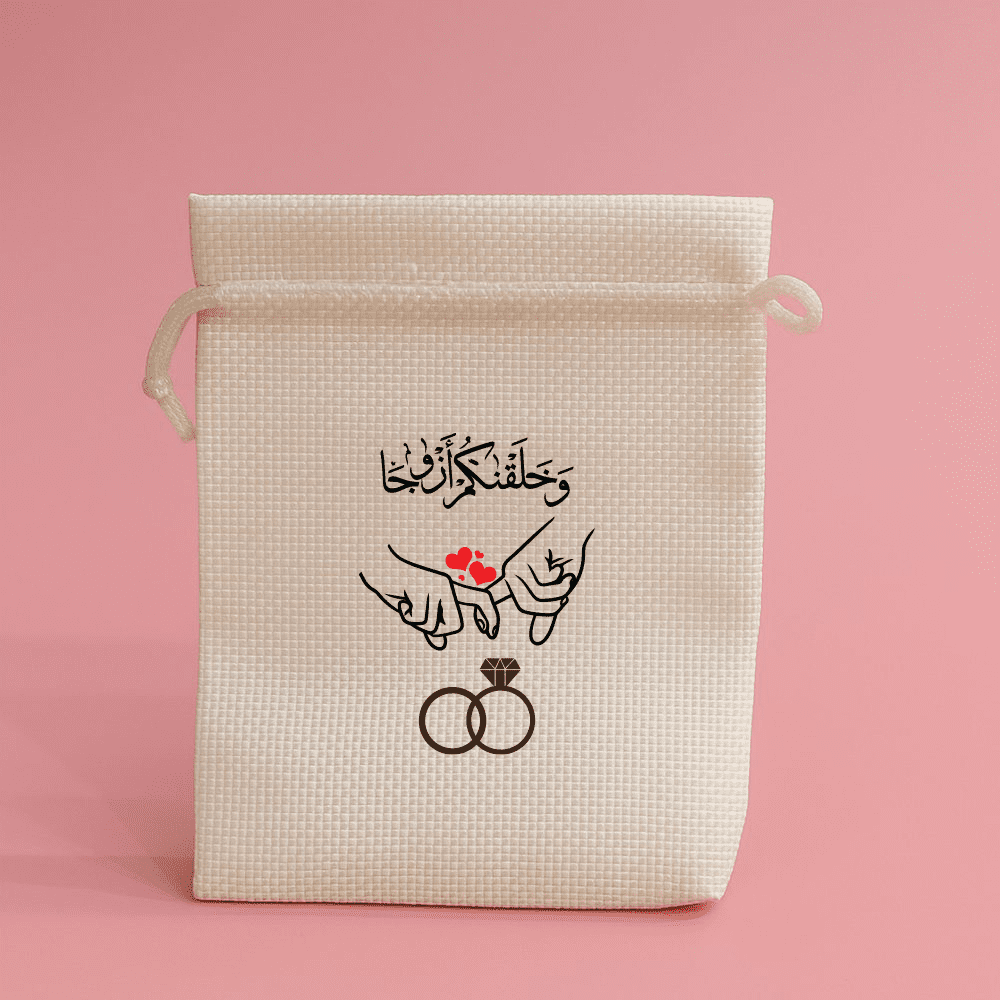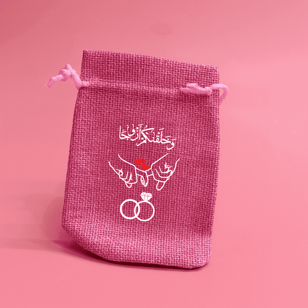 اكياس خيش بطباعة مميزة لتوزيعات الخطوبة و الزواج عدة الوان(10 اكياس)