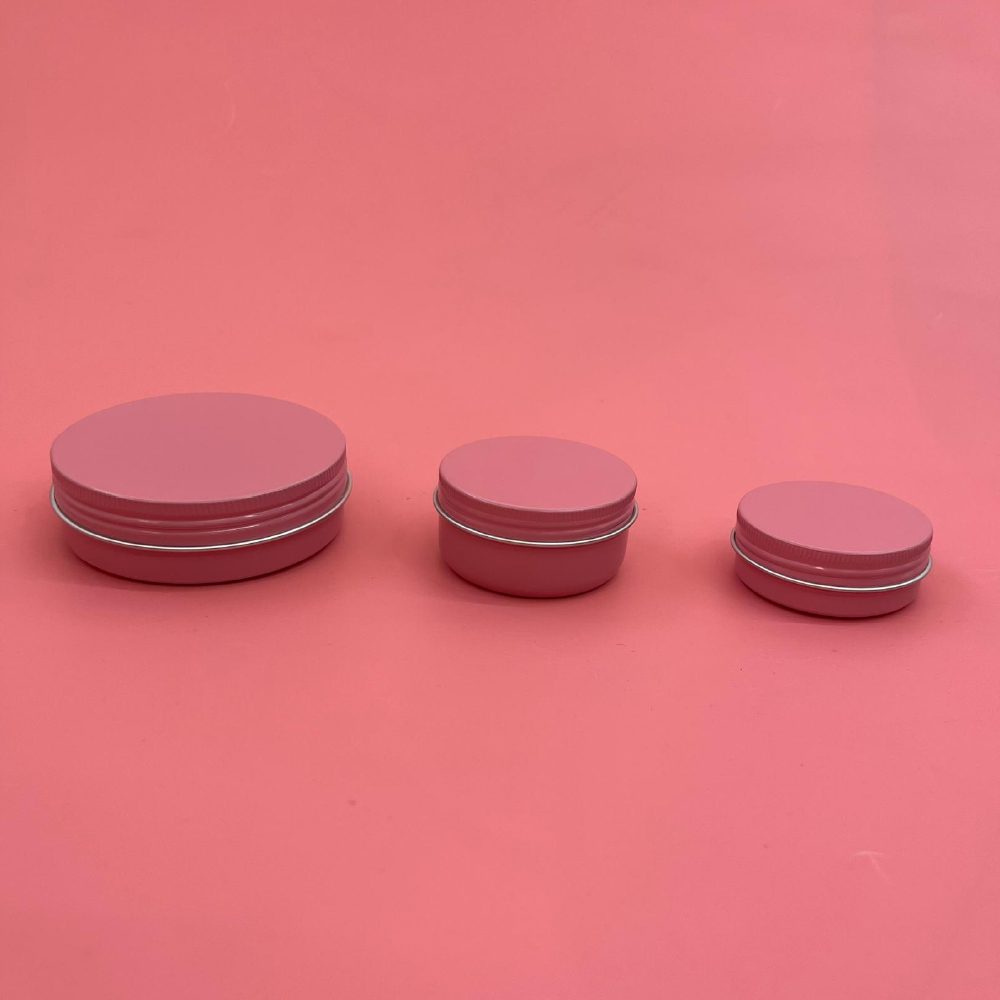 علب معدنية المنيوم زهري عدة احجام pink aluminum jar